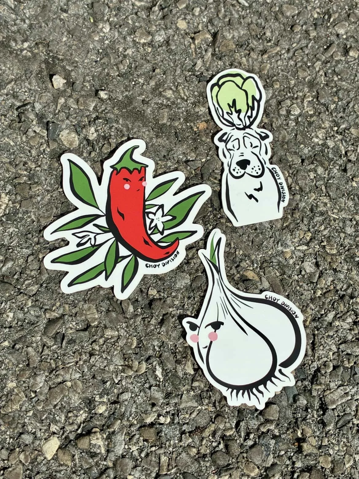 Choy Division is a diversified vegetable farm, with a focus on growing East Asian heritage crops using regenerative agricultural techniques. Their farming decisions are made with soil biodiversity and ecosystem health as a primary factor, not just productivity and profit. For Choy Division, sustainability means taking care of the earth, ourselves, and each other. I worked with Christina the farmer to capture the spirit of Choy Division in my illustrations of sassy garlic, peppers, and a peaceful Momo balancing a napa cabbage on his head inspired by capybaras with citrus on their heads. We made these illustrations into merch that you can buy to support Choy Division!
