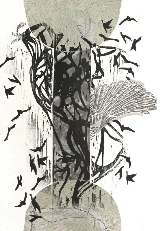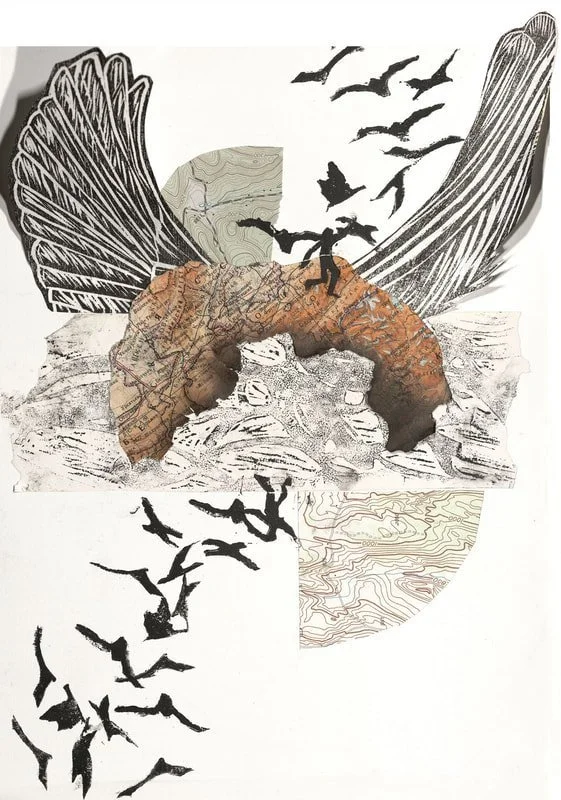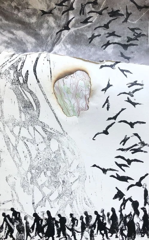 My senior thesis at the University of Vermont, Transcending Boundaries, compared the effects of climate change on human and bird migration. The theme of transcending boundaries originated with the visual of birds flying unobstructedly through national and state borders during migration. This image contrasts the various barriers humans experience in their migration, as they are halted with social and political structures. Removed from these structures, these boundaries are merely hand drawn lines on a map. My work aims to transcend the boundaries between natural science and social science with an interdisciplinary exploration of avian and human migration. Climate change knows no boundaries, and its effects must be studied with a multi-species lens in order to create a just and resilient world.